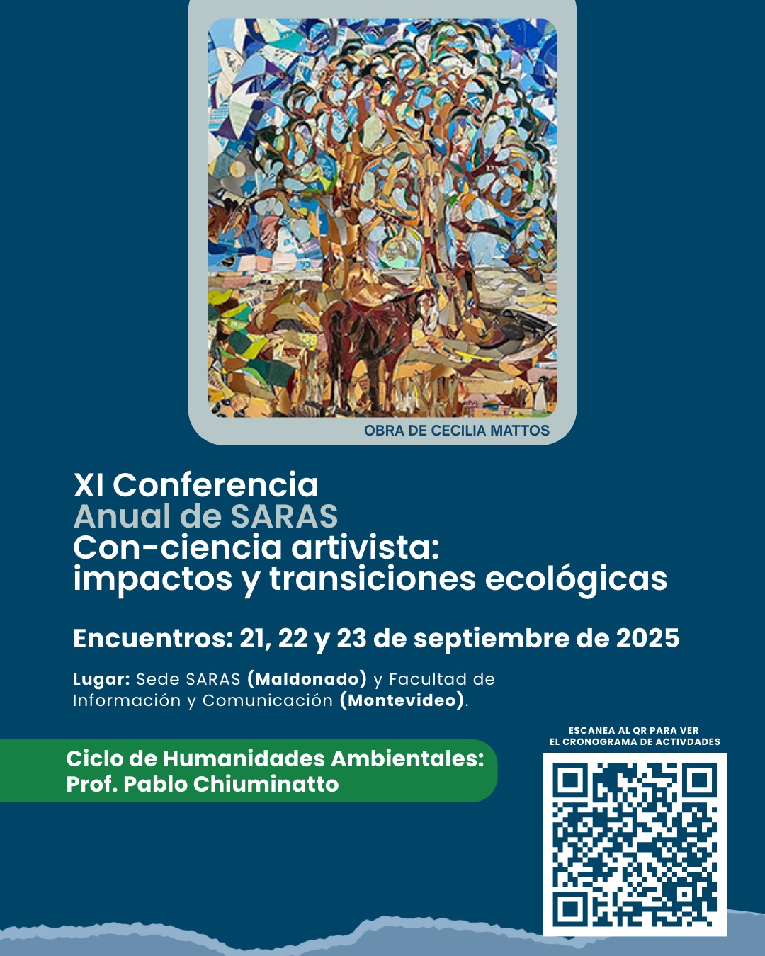 administrador2025-09-18T21:38:19+00:00XI Annual SARAS Conference Artivist Con-science: Ecological Impacts and Transitions Environmental Humanities Cycle: Prof. Pablo Chiuminatto The Environmental Humanities Group invites you to a three-day gathering: on September 21 and 22 at the Maldonado headquarters of the South American Institute for Resilience and Sustainability Studies (SARAS), where, in addition to keynote talks, a World Poetry [...]